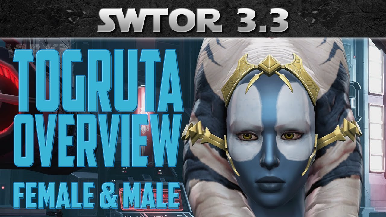 On July 22nd, 2015, Star Wars: The Old Republic released it’s newest species: Togruta. Togrutas are an alien species that have head-tails similar to Twi’leks, but also have extra horns on their head called “montrals”. Their face coloration and head-tail texture also makes them unique from their more-famous counterpart. The new species is purchasable with Cartel Coins, and has multiple options you can choose from, including gender, colors, patterns and jewelry.