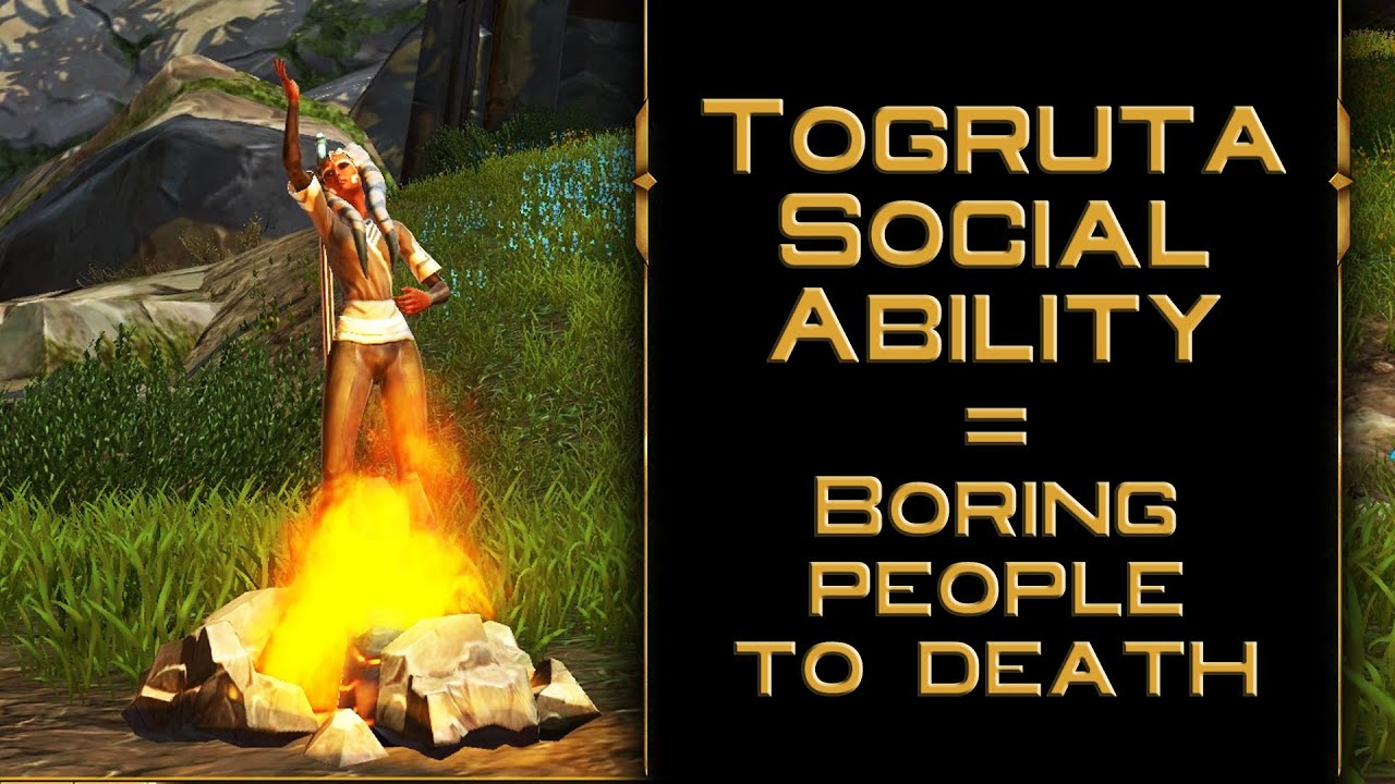 Togruta also come with a race ability called “Storytelling”. It has no combat affect, but can be used for fun or for roleplay. It will cause your Togruta to gesture in front of them as if they are speaking to a crowd.