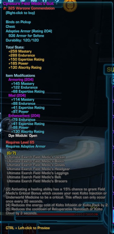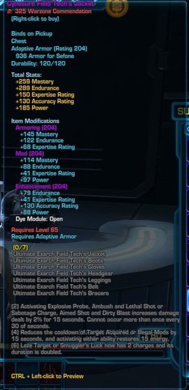 Have a suggestion or correction? Go to the Swtorista Website Discord and post your report in the #report-armor channel. You will need to make a free Discord account.