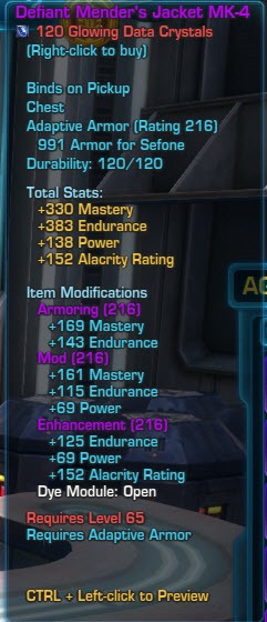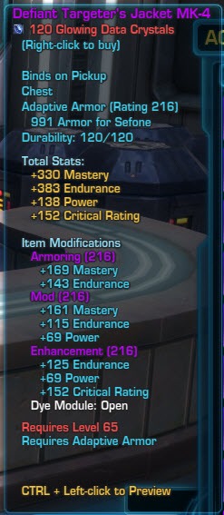 Have a suggestion or correction? Go to the Swtorista Website Discord and post your report in the #report-armor channel. You will need to make a free Discord account.