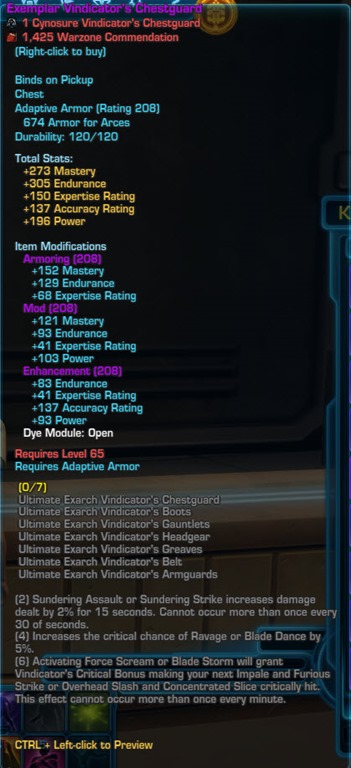 Have a suggestion or correction? Go to the Swtorista Website Discord and post your report in the #report-armor channel. You will need to make a free Discord account.