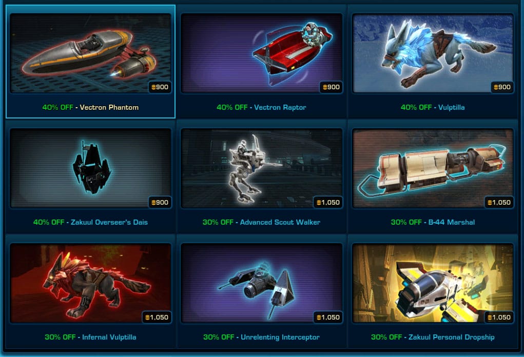 | Zakuul Personal Dropship | 1050 CC | 1500 CC | 30% Off | |