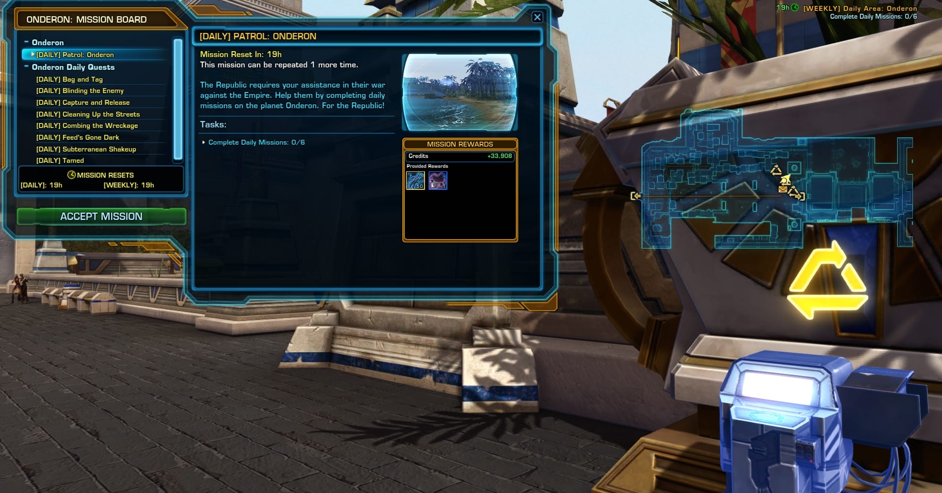 Complete 6 of 10 daily quests on Onderon: