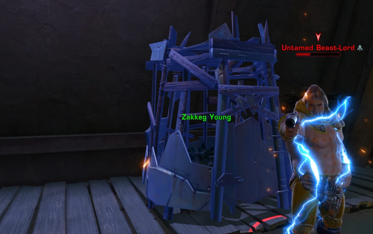 - Once you’ve looted the key from the beast-lord, you can backtrack up to the other hallway where you’ll find more untamed enemies and the last of the bonus objective zakkeg cages before the final door.