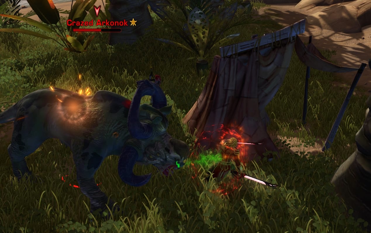 - You’ll repeat this search in 4 different locations, and at the fourth, confirm the track with a 5th interaction. Once done, a Ferocious “something” will appear (It could be an Arkonok, Pritarr, any Onderon animal.) They’re all gold level and basically just melee you quickly.