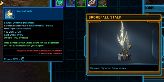![]() | Research Notes: Sporefall | Allows interactions with special objects in Sporefall for 30 minutes - Research notes containing information collected on the Sporefall by the Galactic Sustainability Institute. | Friend | 35,000 |