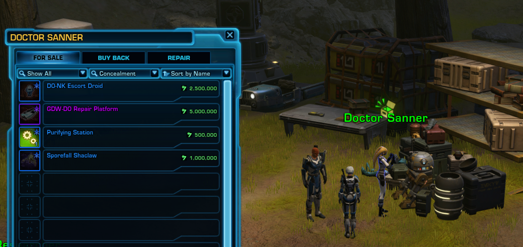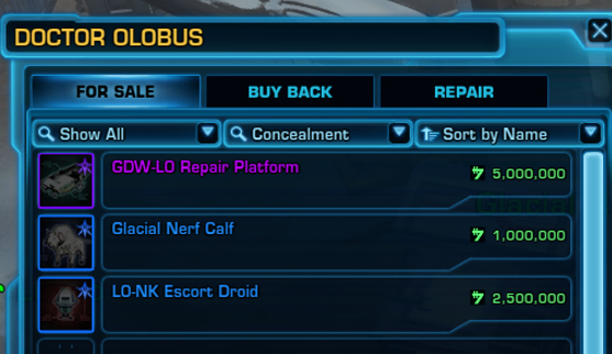![]() | Forward Camp Speeder Access | Enables access to the Forward Camp Speeder service for 30 minutes. - Grants access to GSI speeders traveling to and from the forward camps. | Friend | 25,000 |