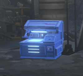 You will see these glowing blue workshop tables around the area called Hazard Mitigation Modules – if you are just starting, you can’t use any of their functionality yet, so don’t worry about them. They will become available later in the questline or when you rank up in reputation.