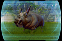 Lore Entry: Domestication of the foraging omnivores known as grophets has long been a goal of livestock farmers on Rishi, but the notoriously stubborn and intelligent mammals do not take well to pens or cages. Grophets use their dense mass, low centers of gravity and nodule-pocked foreheads to ram defensively into predators and other nuisances, while their long, sensitive ears make them especially difficult to get the drop on. Grophet demand has spiked among game hunters in recent years as their raw entrails have become a noted Hutt delicacy.