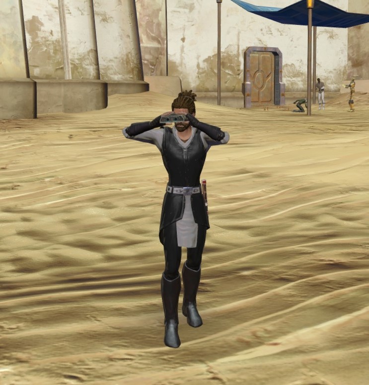 The new outfit of my character, I went with a little more grey-ish look to resemble the fall of the Jedi Order during the invasions of Zakuul!