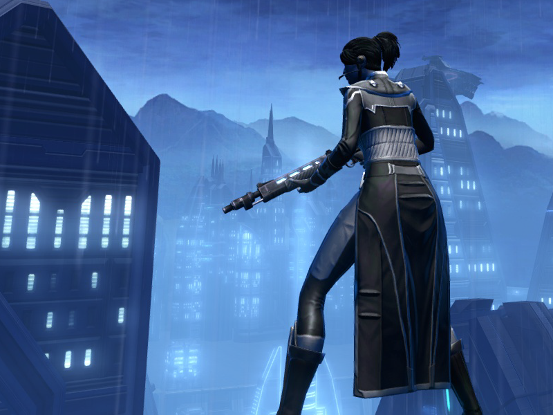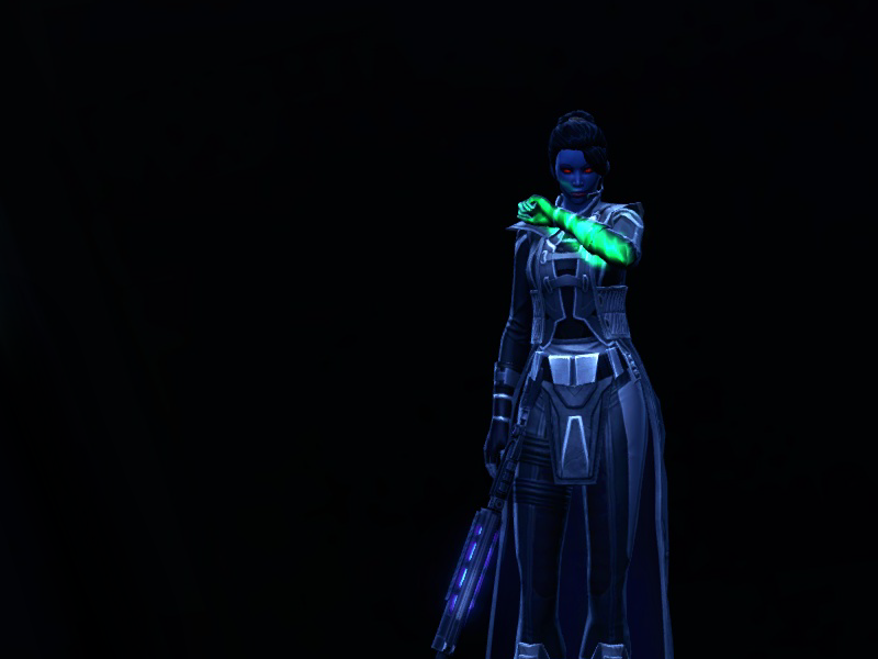 After seeing this gorgeous chest piece in one of Aeden’s newest submissions (http://torf.mmo-fashion.com/aeden-jedi-covenant-46/), I couldn’t help myself. I knew this would be the PERFECT jacket for my Agent! I was lucky enough to find one up on the GTN for a fairly reasonable price, and I immediately started putting this set together… And I’m absolutely in love with it!