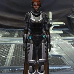 This is a 'covert ops / jungle' sort of outfit. I wanted something sleek and perhaps a little stealthy. Tying together a couple of Havoc Squad / Officer's bits with a grey dye, as well as a couple choice pieces to fill out the rest of the set, and I think it looks pretty decent.
