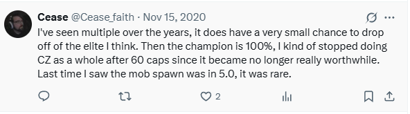 thezman1 [September 10, 2025]: got the boss to spawn and the drop on 09/07 only took hours of swapping instances. Had been trying on and off since the beginning of the year to get it.