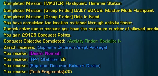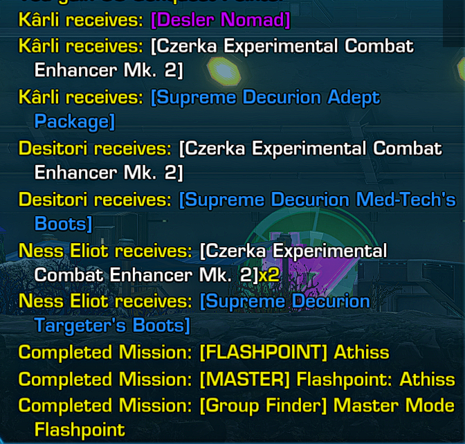 The Desler Nomad is a rare drop from Master Mode Flashpoints. It seems to come from the final bosses, but there is no confirmed list of which Flashpoints it comes from. Players have reported it dropping from Hammer Station, Czerka Corporate Labs, Czerka Core Meltdown, Mandalorian Raiders, Athiss, and even Cademimu, even as recently as 2020. The item is Bind on Pickup, so players who run Master Modes frequently will come across them quite often.