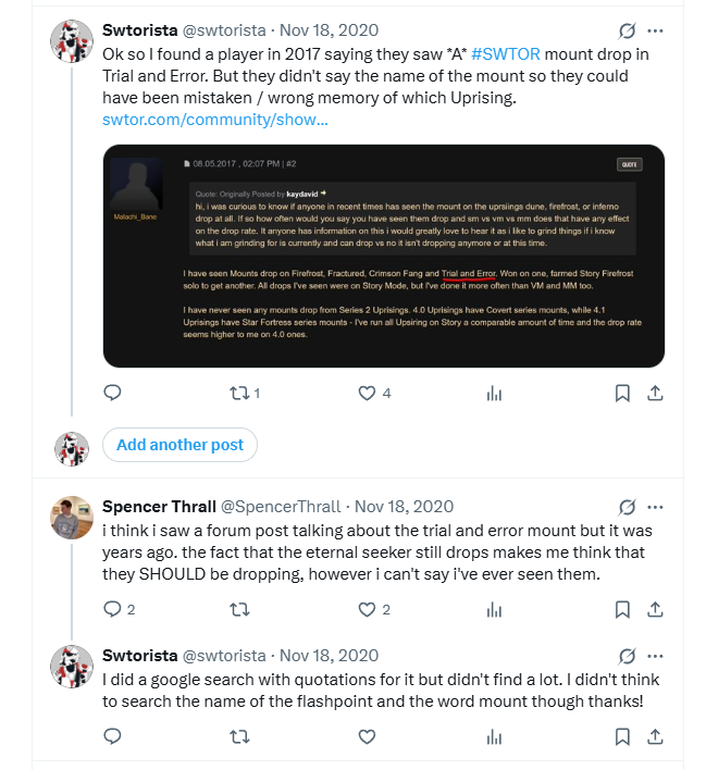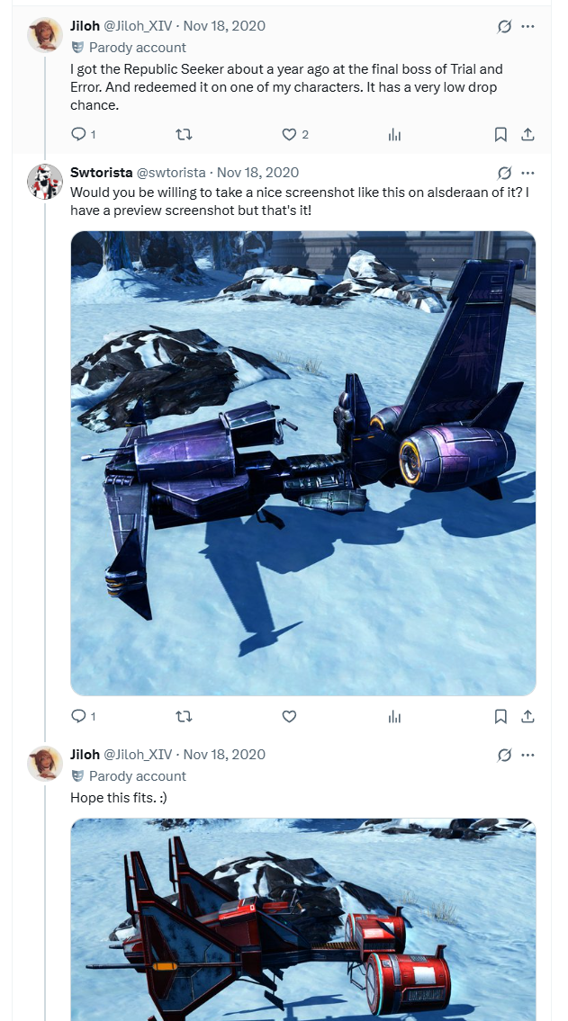 Have a suggestion or correction? Go to the Swtorista Website Discord and post your report in the #mounts-pets channel. You will need to make a free Discord account.