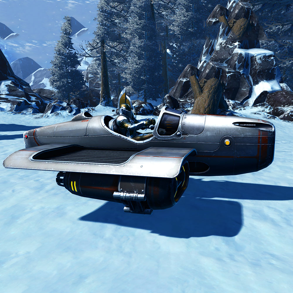This mount is special and allows you to place one pet on your mount with you when you drive on your speeder. View Other Pet Mounts