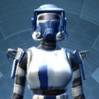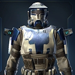 This is the Level 20 PvP set for troopers that can be purchased with Warzone Commendations. Only the chest and legs in the set are orange, rest are blue (not moddable).