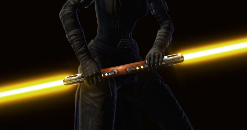 The Exquisite Champion's Dualsaber is a Cartel double bladed lightsaber that can be found in Star Wars: The Old Republic. The Exquisite Champion's Dualsaber can be worn at any level in the Outfitter - it's a cosmetic weapon, and has no stats attached to it.