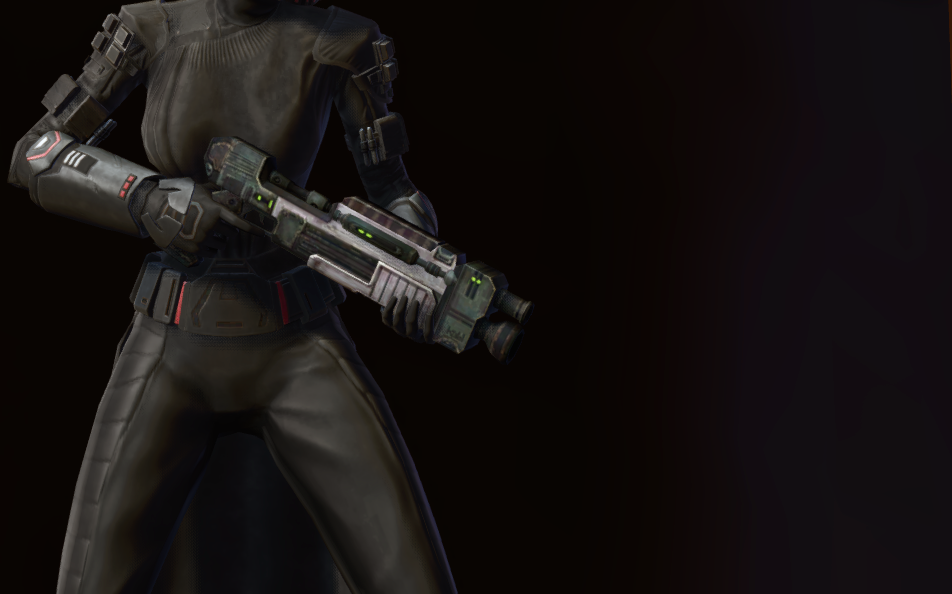 The Fitted Exile's Shredder is a Fitted blaster rifle that can be found in Star Wars: The Old Republic. The Fitted Exile's Shredder can be worn at any level in the Outfitter - it's a cosmetic weapon, and has no stats attached to it. This item is legacy bound, which means it can transferred between your characters by mail or legacy bank.
