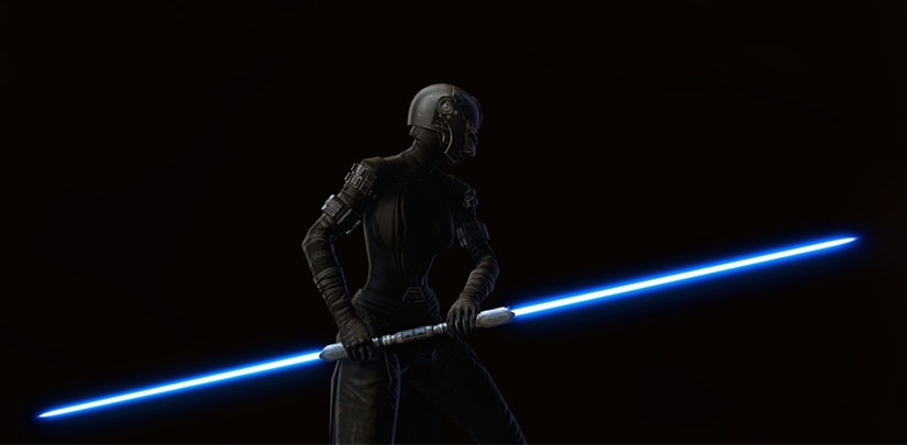 The Frontier Hunter's Dualsaber is a Cartel double bladed lightsaber that can be found in Star Wars: The Old Republic. The Frontier Hunter's Dualsaber can be worn at any level in the Outfitter - it's a cosmetic weapon, and has no stats attached to it.