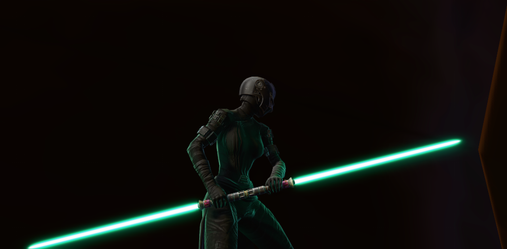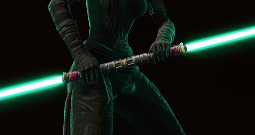 The Interrogator is a Galactic Seasons Track double bladed lightsaber that can be found in Star Wars: The Old Republic. The Interrogator can be worn at any level in the Outfitter - it's a cosmetic weapon, and has no stats attached to it.
