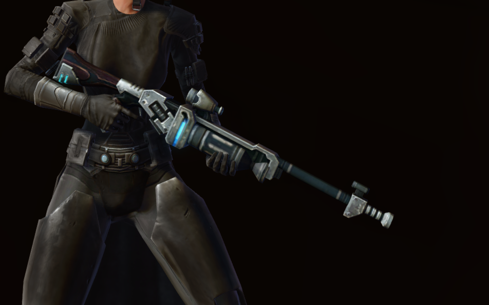 The J-21 Rotary Sniper Rifle is a Retired Flashpoint sniper rifle that can be found in Star Wars: The Old Republic. The J-21 Rotary Sniper Rifle can only be used at a specific level and up, but if you are higher than the weapon's required level, you can wear it cosmetically in the Outfitter to show its appearance on your character while using a higher-level weapon in your Gear tab for stats.