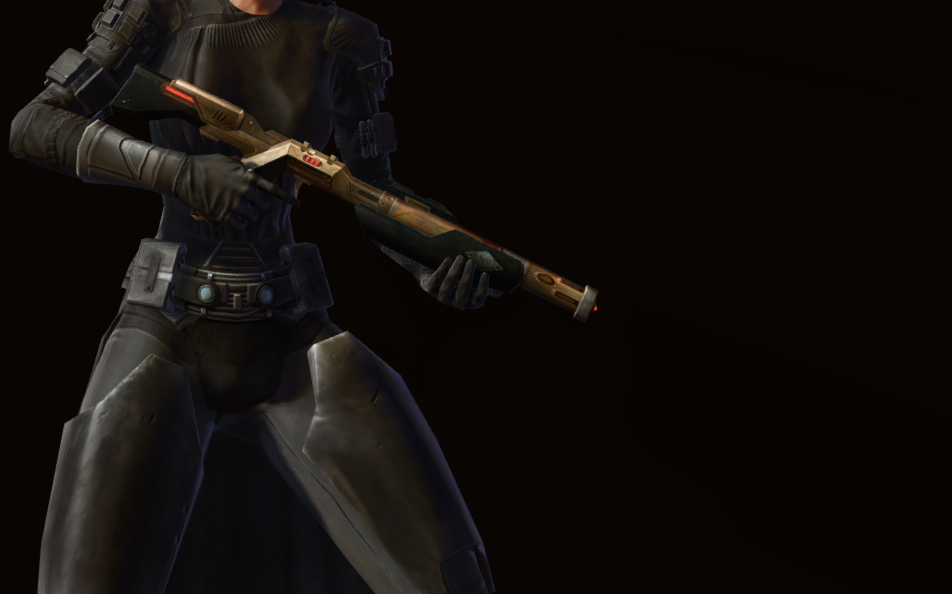 The Tactical Hunting Rifle is a Retired Old Unbound Rare Drops blaster rifle that can be found in Star Wars: The Old Republic. The Tactical Hunting Rifle can only be used at a specific level and up, but if you are higher than the weapon's required level, you can wear it cosmetically in the Outfitter to show its appearance on your character while using a higher-level weapon in your Gear tab for stats.