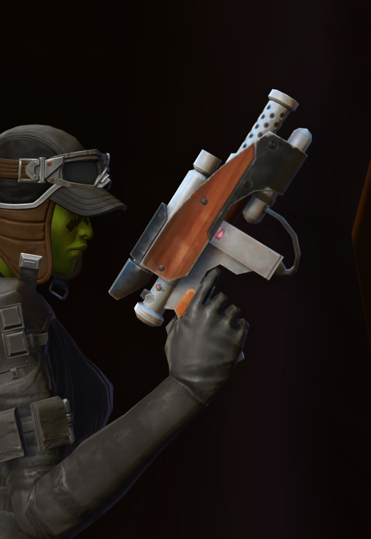 The Underworld's Blaster Pistol MK-2 is a Tech Fragments blaster pistol that can be found in Star Wars: The Old Republic. The Underworld's Blaster Pistol MK-2 can be worn at any level in the Outfitter - it's a cosmetic weapon, and has no stats attached to it.