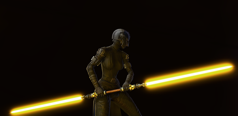 The Vigorous Battler Dualsaber is a Cartel double bladed lightsaber that can be found in Star Wars: The Old Republic. The Vigorous Battler Dualsaber can be worn at any level in the Outfitter - it's a cosmetic weapon, and has no stats attached to it.