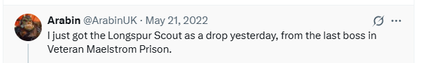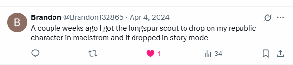 Have you gotten this mount recently? Go to the Swtorista Website Discord and post what enemy you got it from an what difficulty mode in the #drops-mount Longspur Scout channel to help others! You will need to make a free Discord account.